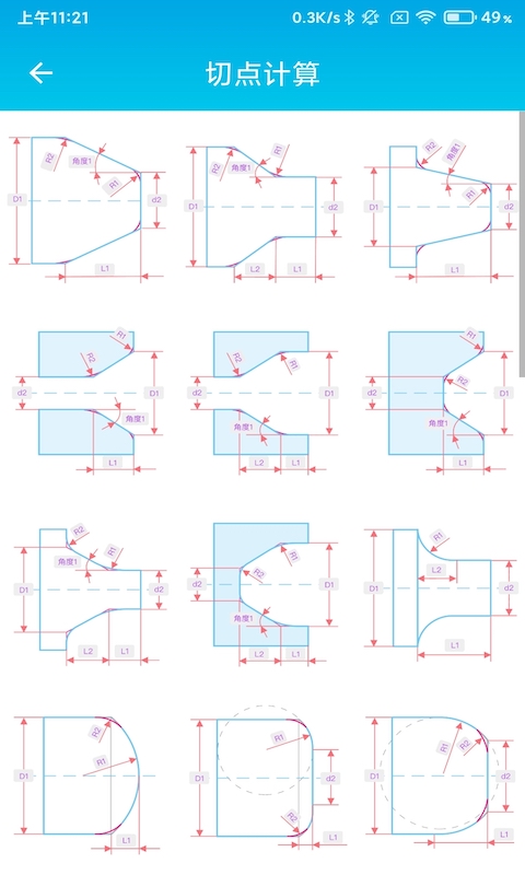 1. 圆弧切点计算:包含多种常见零件结构,可快速计算出切点坐标并实时生成程序,同时提供刀尖补偿功能。