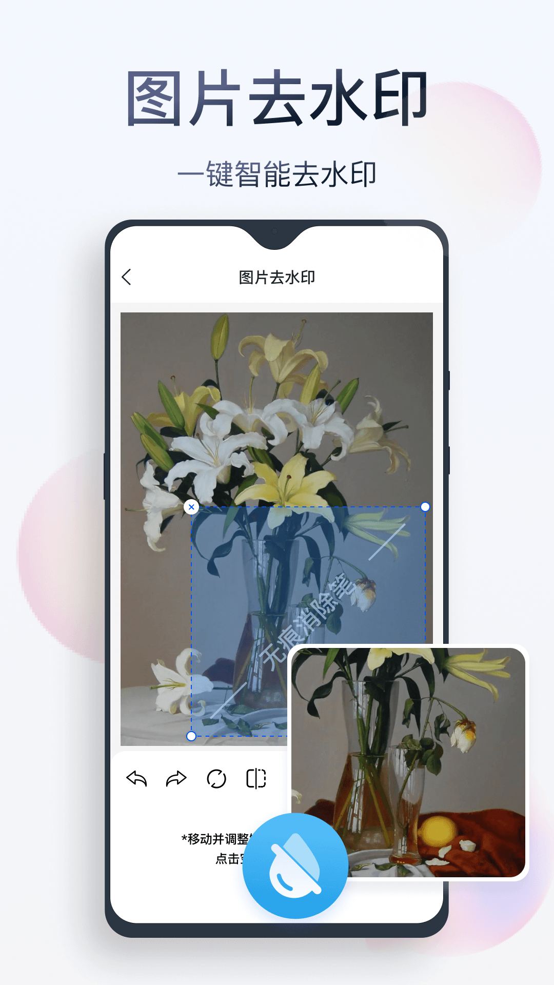无痕消除笔是一款简单实用的图片编辑工具,软件内置了强大的消除笔功能,哪里不要抹哪里,操作简单易上手。同时软件包含了漫画脸生成,老照片修复,制作长拼图和切图等实用功能。是一款功能强大,简单实用的图片编辑制作软件。产品目前支持AI绘画功能,欢迎尝试