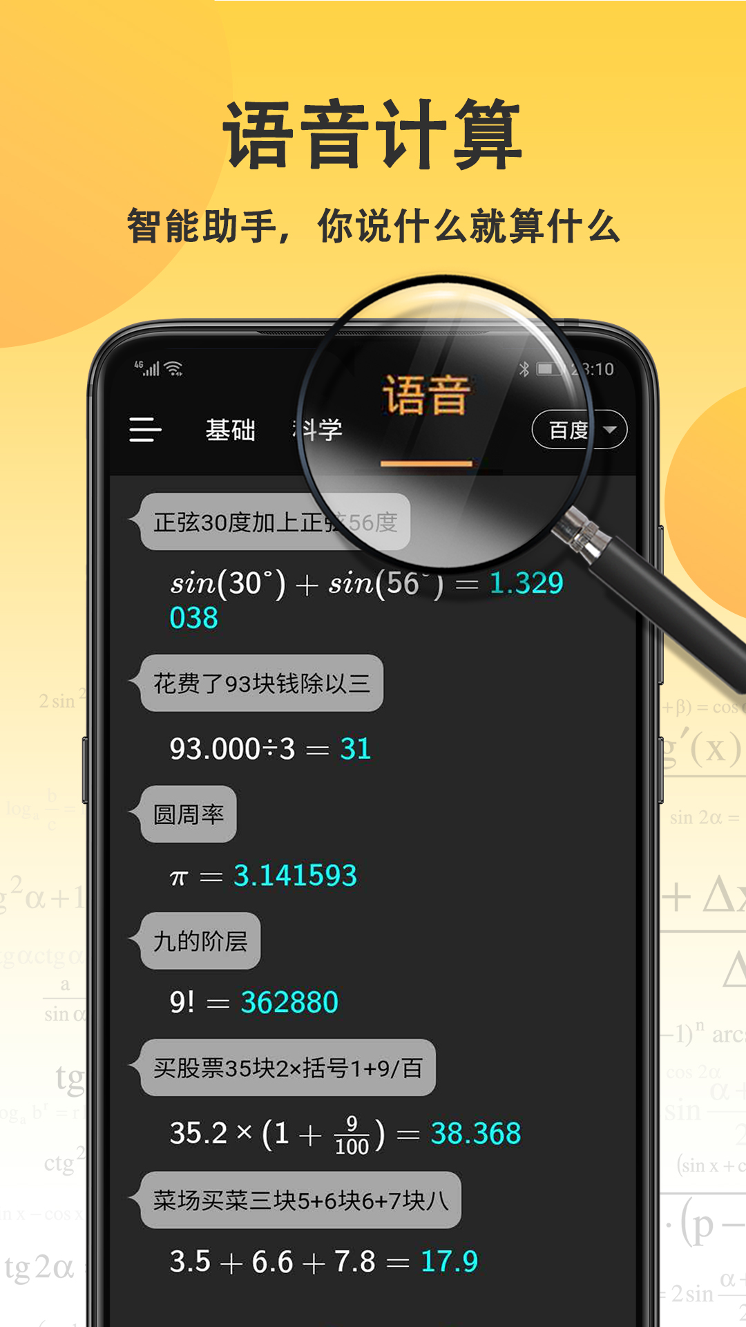 3. 便捷操作:语音计算器的界面设计简洁,用户可以轻松上手。无论是简单的算术运算还是复杂的科学计算,语音计算器都能快速响应。