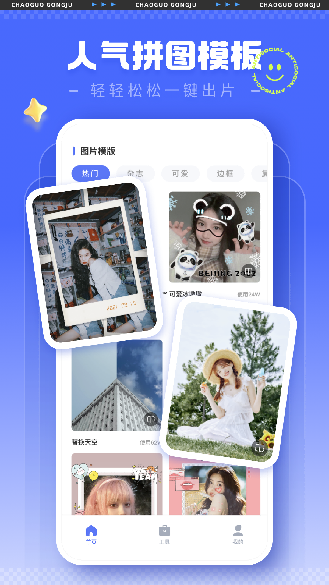 6:【多样拼图】具备齐全的拼图样式,比如图片拼接、九宫格切图、长图拼接等;