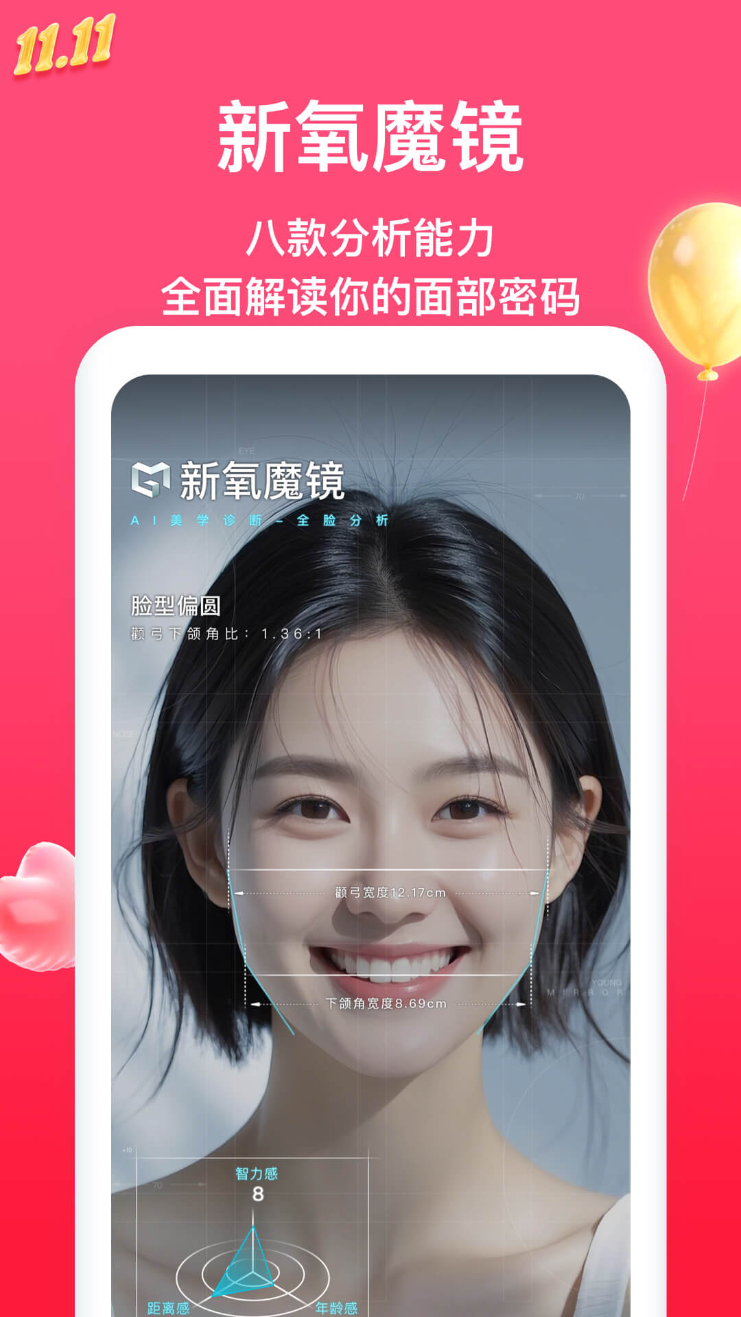 【智能测脸】:新氧魔镜自主研发AI美学诊断功能,一键测脸,精准定义你是哪种美。