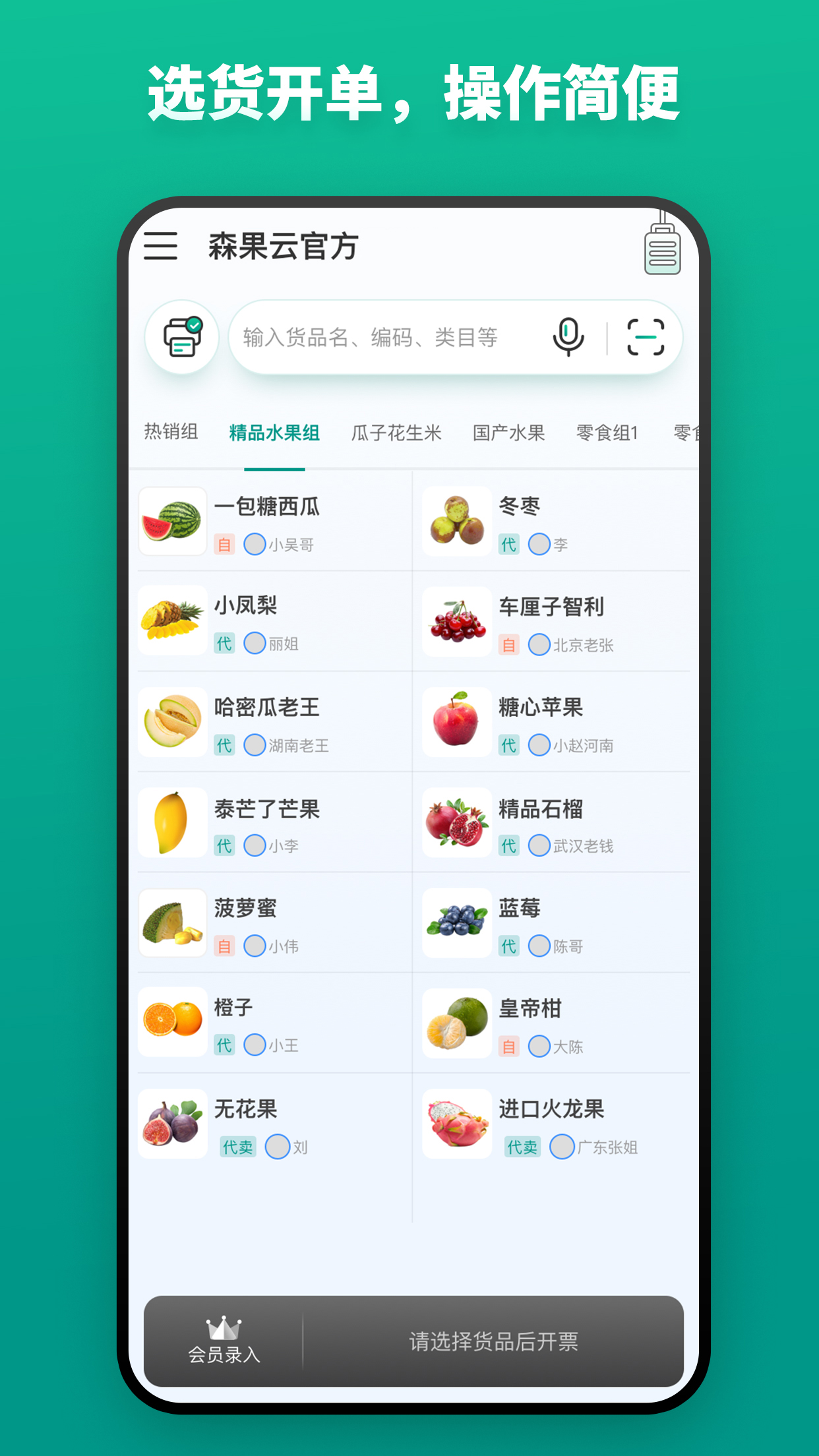 森果开票助手,让批发生意经营更加简单高效!森果开票助手是森果云专为批发档口提供的高效销售工具,产品使用Saas架构,以移动开单,简单高效为核心,森果开票助手可以通过手机、平板多端操作,随时随地掌握生意数据。