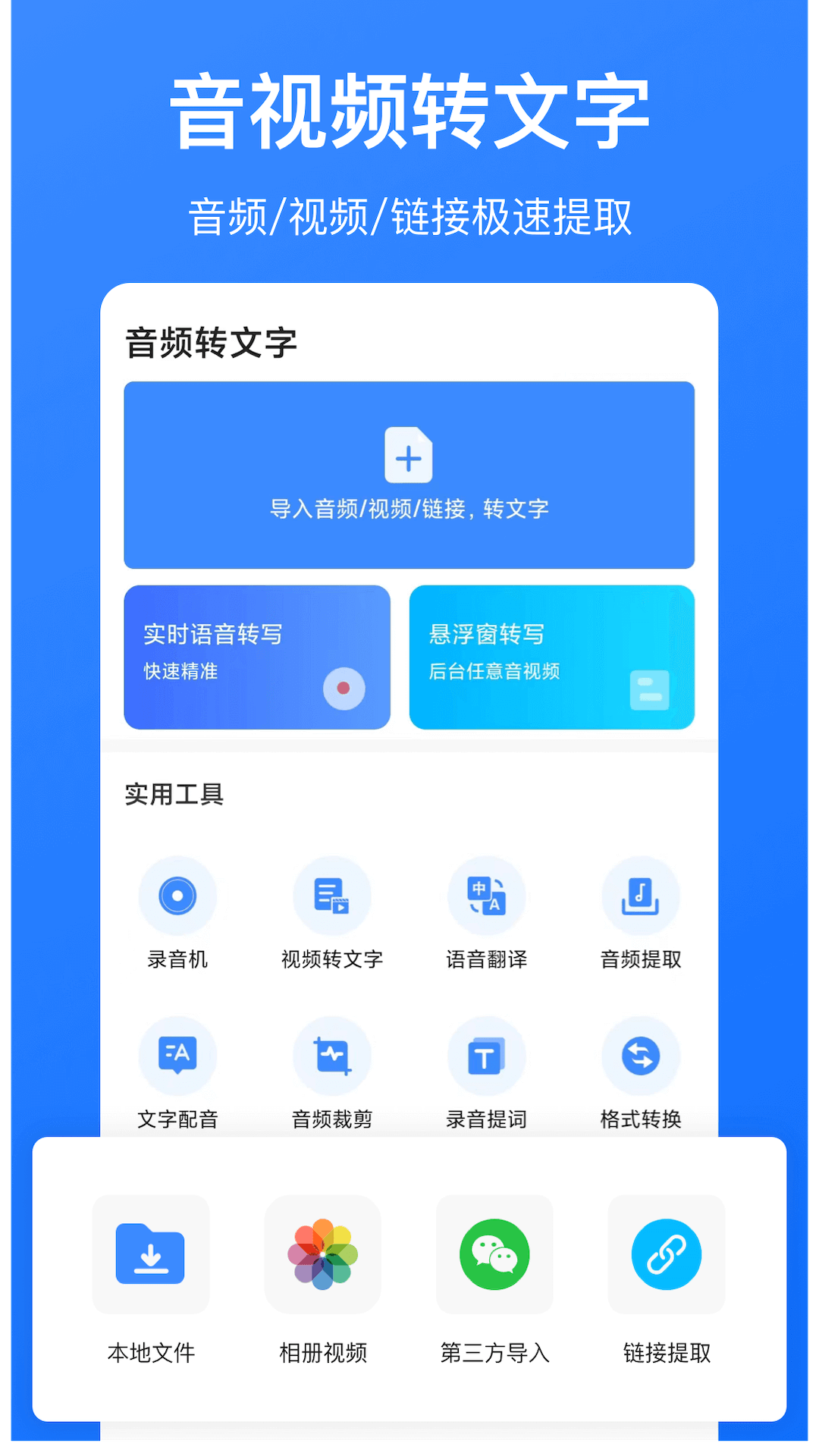 《音频转文字》是一款支持“录音转文字、一键文案提取、“等多功能于一体的强大软件!轻松实现“一边录音,一边提取文字”,并支持导入外部音频文件进行文字识别提取!