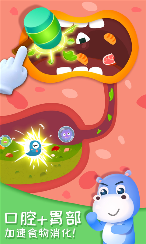 快来化身小战士,帮助疲惫的胃先生,克服消化难关。“突、突、突”,架起“胃液机关枪”,将食物粉碎掉。
