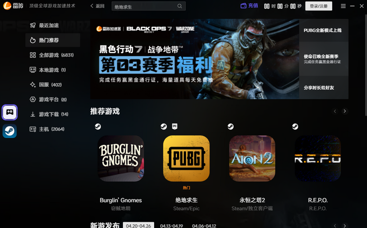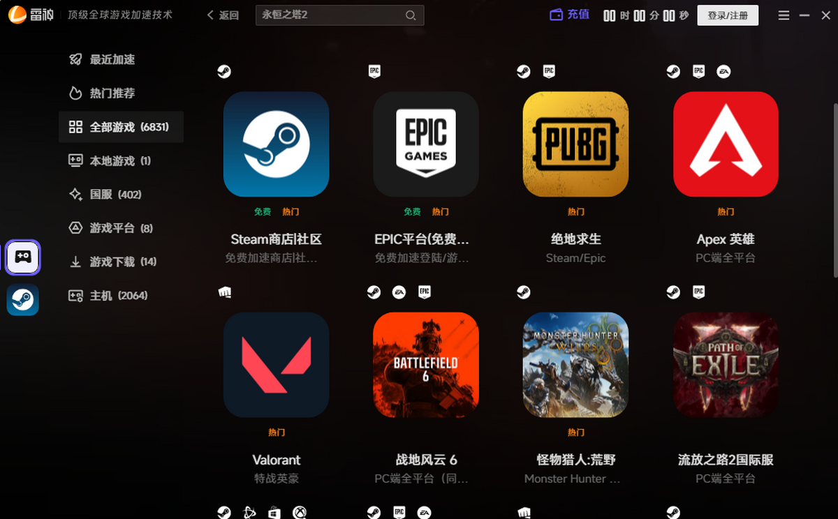 用户可根据自己游戏时间安排在电脑客户端上对加速器进行时间暂停和恢复,可以随时随地的暂停与恢复,暂停将不再受任何限制,没有间隔时间差,操作起来会更加的简洁方便,时间会更加的长久耐用!雷神加速器的暂停功能是针对付费用户的,免费用户是无法使用的,所以要使用这个功能要开通雷神会员。
