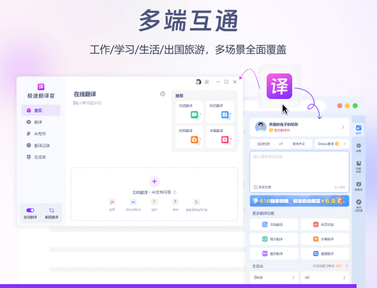 支持PDF、Word、Excel、PPT,一键全篇翻译!