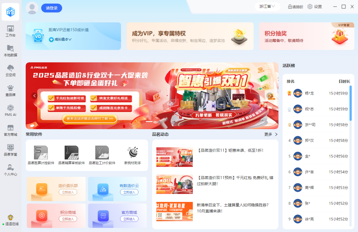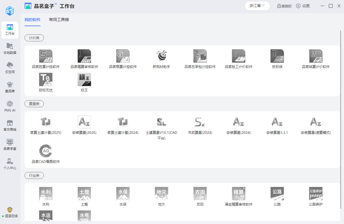 “品茗盒子+”作为品茗造价系列软件的统一入口,在工作台中用户能够更加快捷、方便地新建、打开不同业务需求的软件和工程文件,进一步提高用户的工作效率和使用时的体验感。