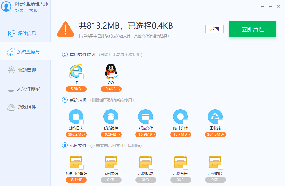 风云C盘清理大师是一款系统盘瘦身工具,可以帮助用户对系统盘进行一键瘦身,清理系统盘虚拟内存,补丁备份,软件垃圾等,全面提升电脑性能。
