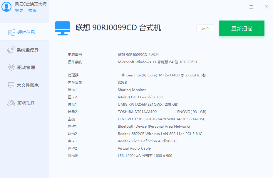 计算机各类硬件信息配置,一键扫描,轻松获取