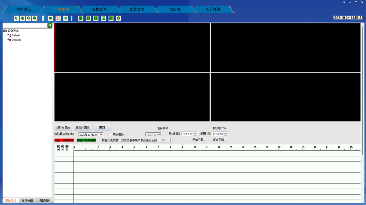 支持设备(本地设备、远端设备)录像(包括本地、前端)的查询回放以及前端录像下载功能。