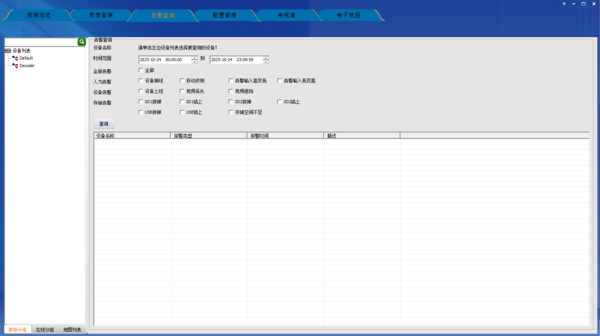 支持右键弹出菜单按设备组名称自动播放视频流功能。