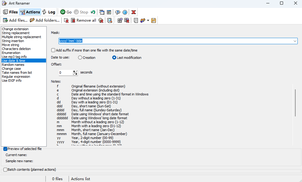 Ant Renamer是一款用于批量重命名文件和文件夹的开源软件,可以通过软件快速设置新的文件名字,启动软件就可以加载多个目录到软件处理,可以自动在软件界面查看全部目录保存的文件,从而适配新的规则对列表的文件执行重命名处理,支持替换字符功能,可以在软件查找原始文件名字中的字符,可以输入新的字符执行替换,也支持删除字符串,在原始名字中连续删除多个字符,方便以后插入新的字符作为新名字,也支持手动在软件输入多行名字,一个名字替换一个旧文件名字。