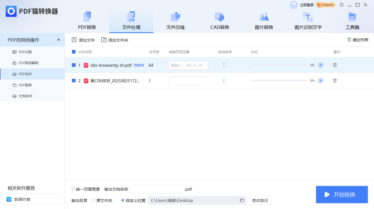 PDF合并、PDF密码解除、PDF分割、PDF旋转、文档合并
