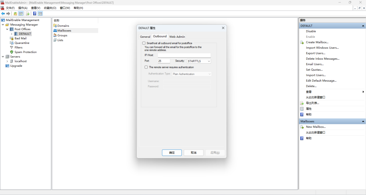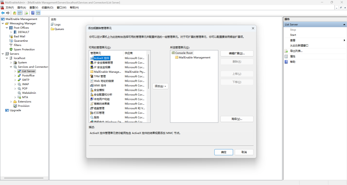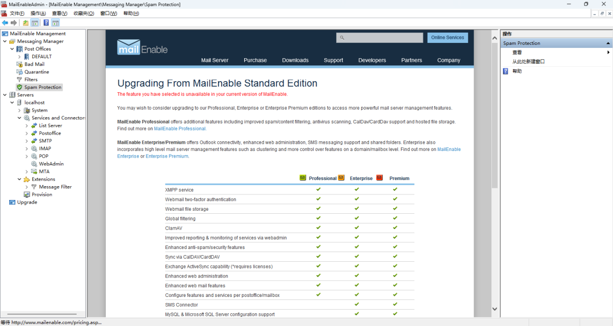 MailEnable是一款对邮件服务器软件,支持SMTP 和 POP3协议,可以创建无限数量的邮件地址,域,组和邮件列表(unlimited amount of email addresses, domains, groups and mailing lists)强大的自动回复控制,SMTP验证,POP验证,反垃圾邮件控制。程序使用标准的MMC 控制台,和windows很好的整合,并且所有的配置都由简单易用的界面操作来完成,附带了诊断工具!