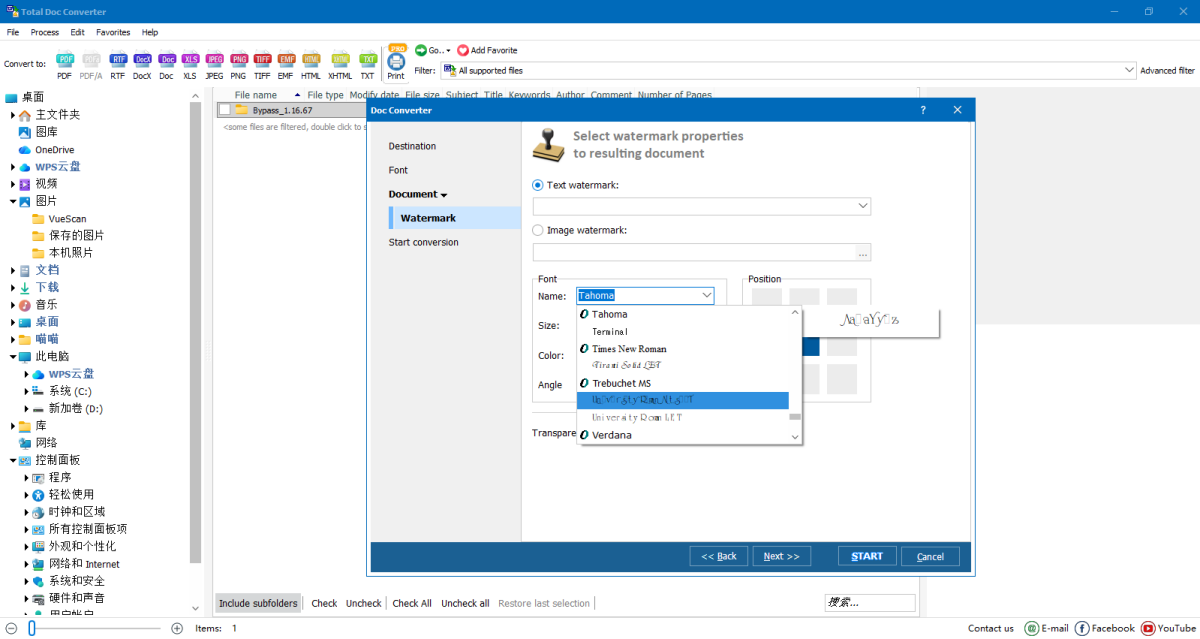 Total Doc Converter 允许设置文本文件的默认字体。