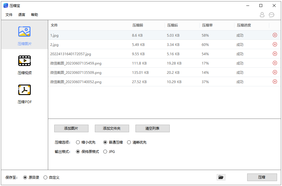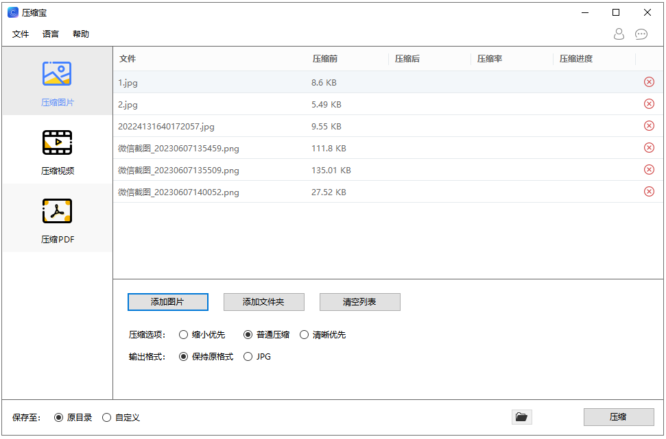支持缩小优先、普通压缩及清晰优先三种压缩选项;