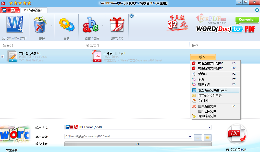 FoxPDF Word(Doc) to PDF Converter正式版3.0