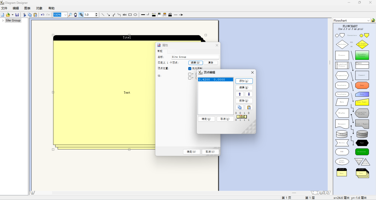 Diagram Designer是一款矢量图形编辑器,可用于创建流程图、UML类图、插图和幻灯片,软件提供可定制的模板对象调色器,可以方便用户对于图形编辑颜色的选择。还支持导入或导出WMF、EMF,BMP,JPEG,PNG,ICO、GIF、MNG,PCX等图像格式。允许用户用简单的绘图机绘制的数学表达式,支持多页、多层次图表。同时自带的meesoft图像分析仪,集成了图像编辑和扩展、位图文件格式的支持。