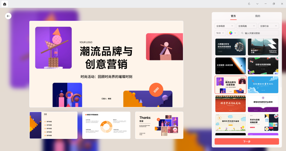 博思AIPPT是一款AI智能生成PPT的工具,提供AI一键生成PPT大纲、文案生成PPT、文件转PPT、智能排版和AI文本优化等功能,内置百款精品PPT模板和丰富布局样式。它还支持多端登录、在线编辑、自动实时保存和云端存储等便捷功能,可导出为pptx或pdf文件。通过博思AIPPT,零基础用户也可以在数秒内获得一份高质量内容和精美视觉的PPT方案,全面提升办公体验。