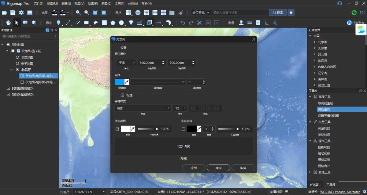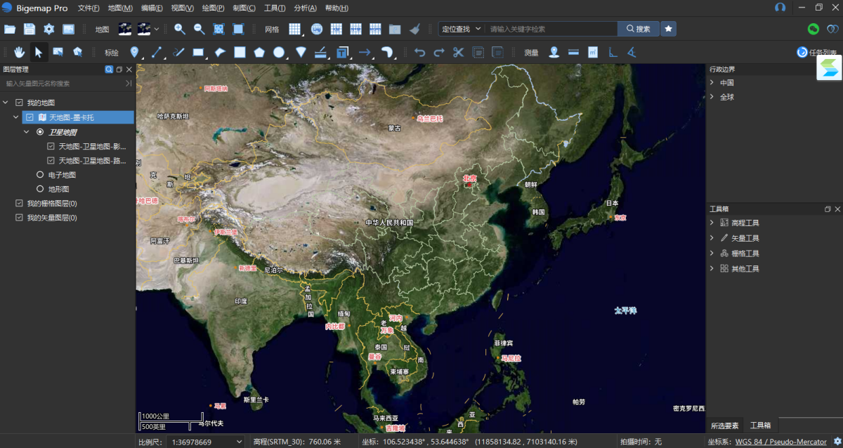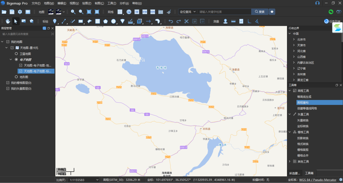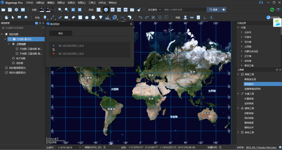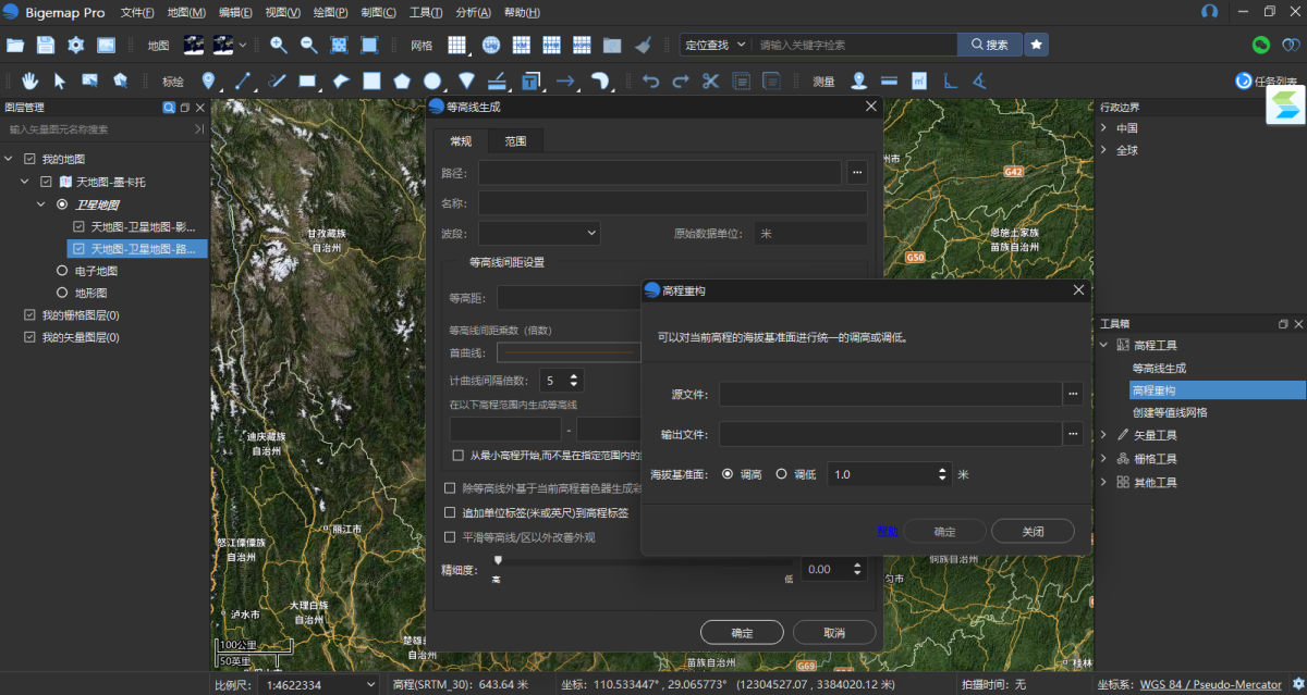 BIGEMAP Pro是一款国产大数据处理基础软件,是在BIGEMAP GIS Office基础上,经过十年的用户积累与反馈和技术更新迭代出的新一代基础软件产品。BIGEMAP Pro主要功能:①矢量数据编辑;②栅格数据处理(投影、识别、服务);③高程数据计算(等高线、水分、坡度坡向、地形三维);④专题地图制图、打印;⑤数据分析处理工具。
