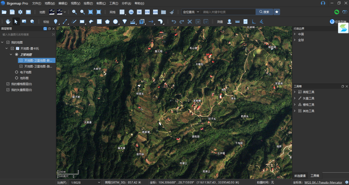 Bigemap Pro支持多种影像数据的处理,包括卫星影像、遥感影像、无人机航拍图、以及移动端拍照的数据等。支持多波段数据融合、支持栅格影像的校正、正射、切片、发布、对比、分析,提取有价值的信息,支持遥感影像的空三处理、拼接、校准、配准、提取和切片发布;支持手机照片的定位、附件、取证等等分析。