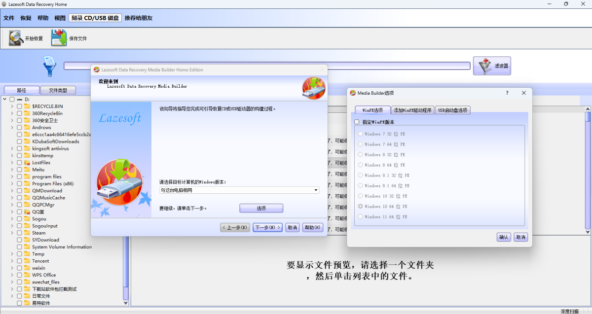 通过选择基于WinPE或Linux基础构建可启动恢复磁盘,Lazesoft Data Recovery确保了最佳的硬件兼容性。