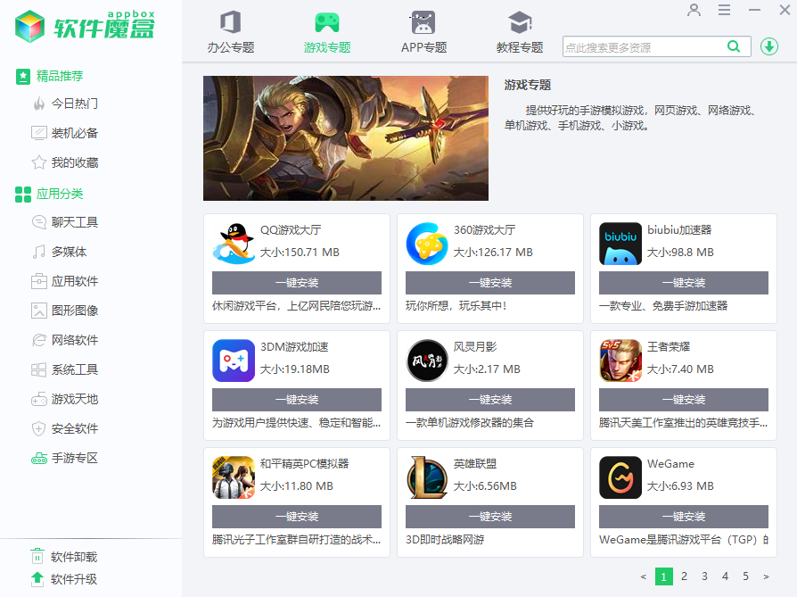 软件魔盒是一款电脑软件管理工具,拥有丰富的电脑软件资源,包括装机必备、聊天娱乐、网络应用、驱动地带、图形图像等分类,并且支持软件一键下载、软件升级等功能。