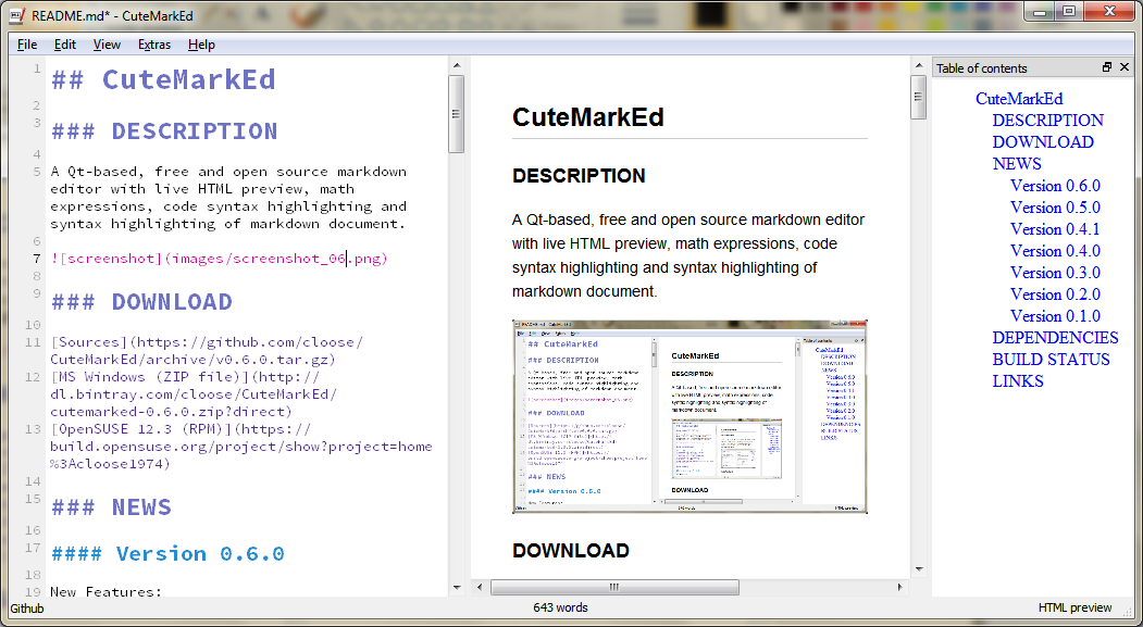 CuteMarkEd是带有实时HTML预览的markdown编辑器。一个基于Qt的免费开源Markdown编辑器,带有实时HTML预览、数学表达式、代码和Markdown语法高亮显示。有关更多信息,请参阅功能页面。