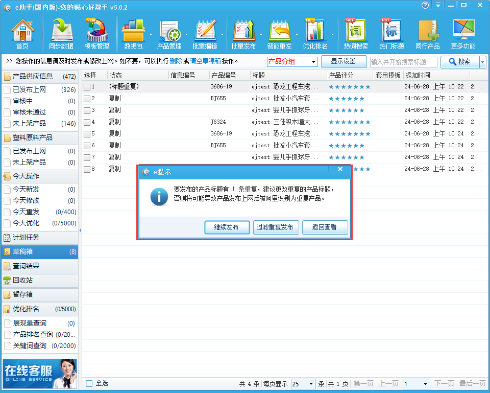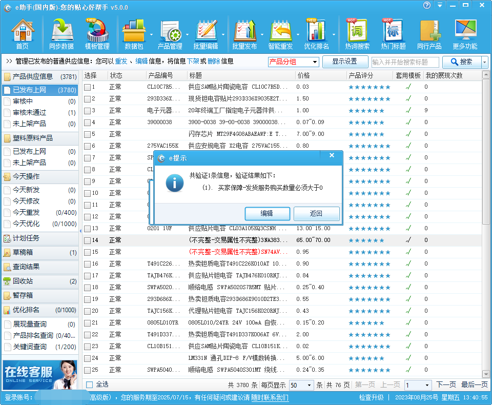 · 全方位检测信息质量,批量优化产品信息质量,提升产品排名,维持排名稳定性。