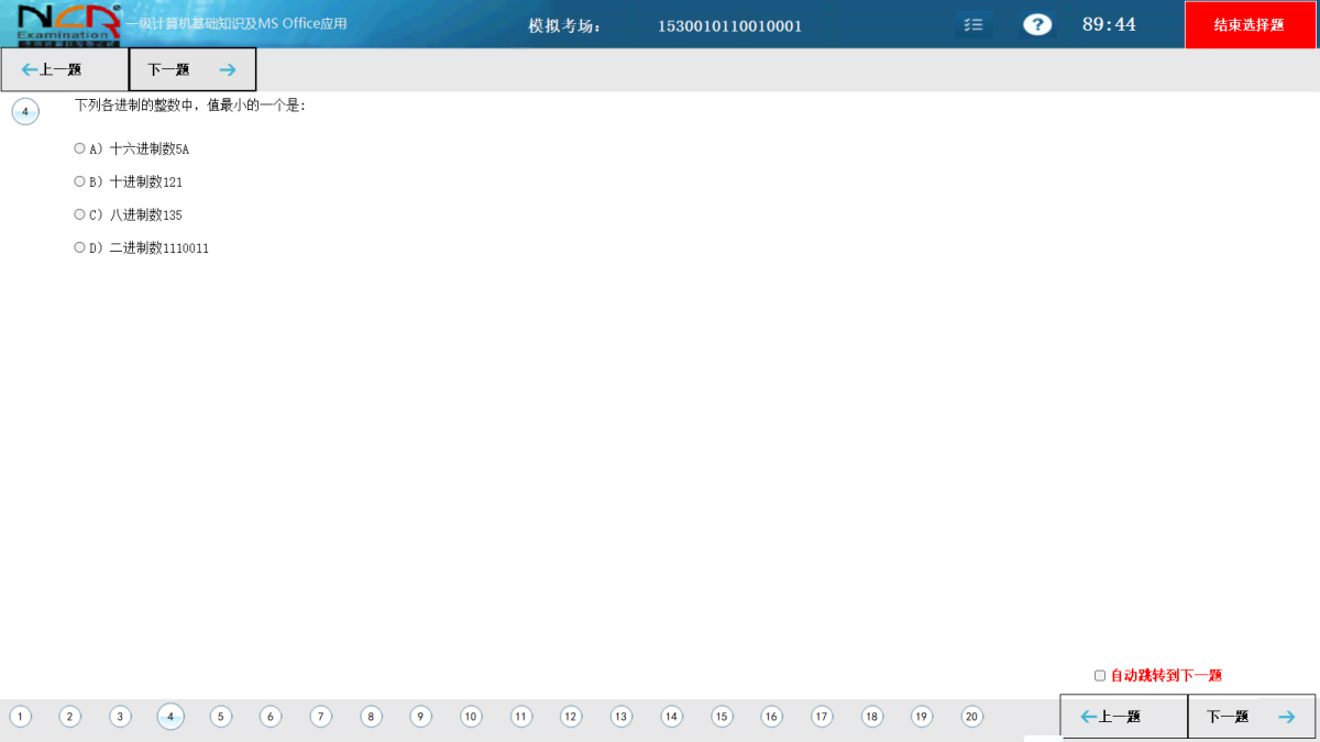 全国计算机等级考试一级计算机基础及MS Office应用使用无纸化考试系统,提供了开放式的考试环境,具有自动计时、断点保护、自动阅卷和回收等功能。考试系统仅在计算机上进行考试,考生只须进行一次考试,就可获得知识和能力水平的评价,考试成绩划分为优秀、良好、及格和不及格四个等级成绩,考试及格者由教育部考试中心颁发统一印制的合格证书。