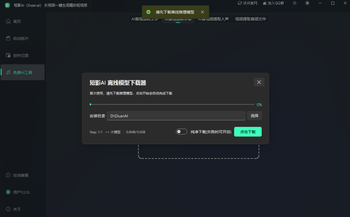 短影AI(Duan.ai)是一个以人工智能驱动的长视频本地离线生成短视频内容创作软件,专为内容创作者设计,一键将长视频生成多个爆款短片,提高短视频内容创作效率。