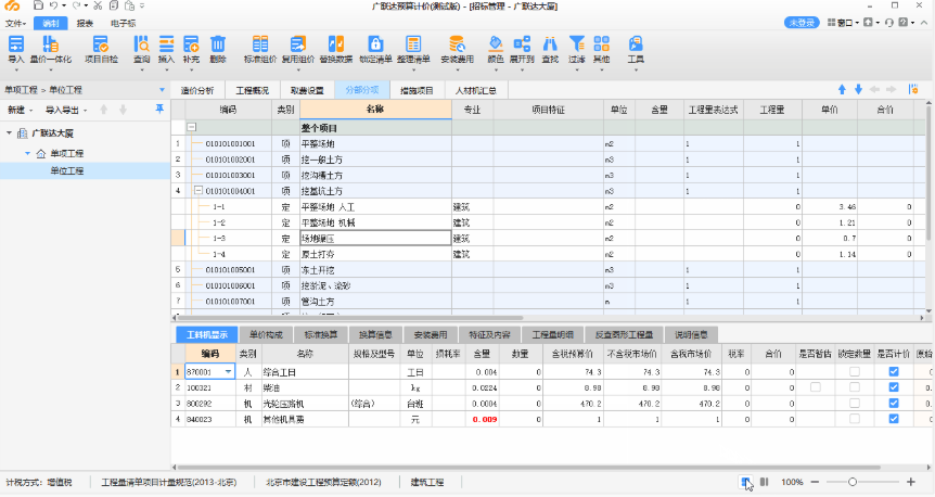 计价文件自动分析指标,设置计算口径后,软件自动分析量价指标;同时软件支持同类工程对比,将工程传至指标神器,神器根据大数据对比分析工程数据和行业或者自积累的对比快速分析出对比结果。