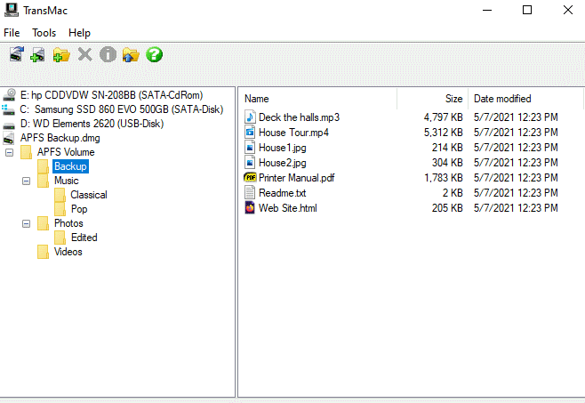 2.打开Mac APFS/HFS/HFS+格式的磁盘驱动器、闪存驱动器、CD/DVD/蓝光介质。