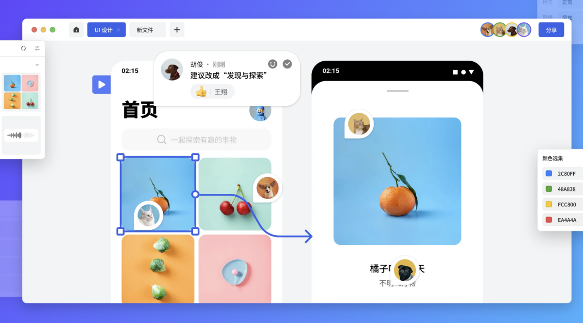 MasterGo 提供文件分享、评论圈话、跟随视角、文件管理等多种协同沟通方式,帮助产品经理、设计师、开发高效协同,让设计与交付更简单