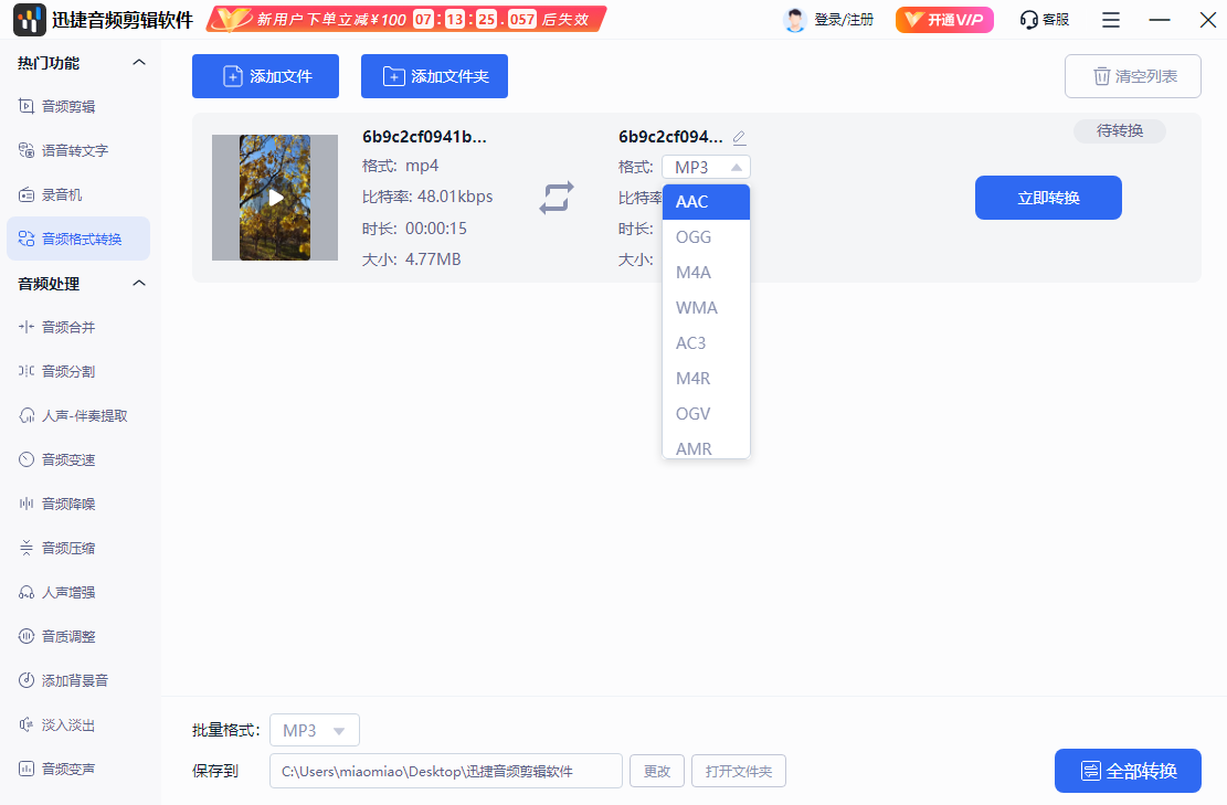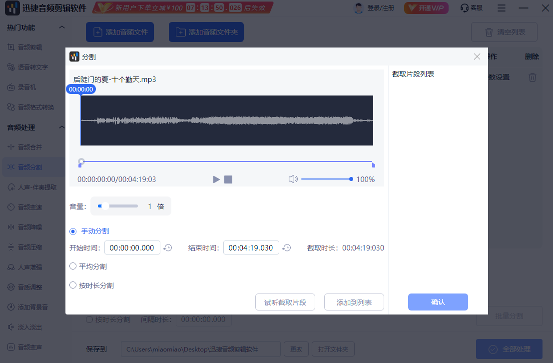 迅捷音频剪辑软件增大音频音量的方法: