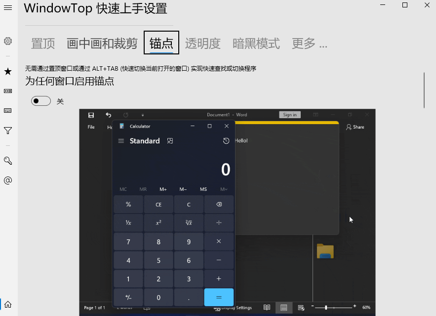 不喜欢频繁用 ALT+TAB 切换窗口?锚点功能帮你快速访问常用窗口,还特别适合触摸屏操作。锚点位置会智能避开重要内容,既方便又不会干扰工作。