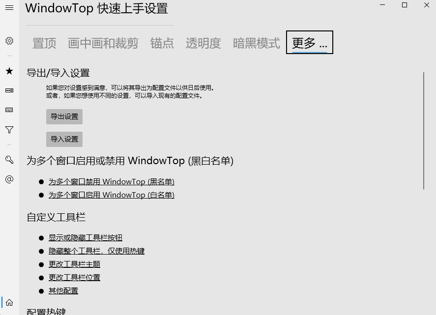 WindowTop是一款窗口自定义设置工具,可将任意窗口置顶、修改透明度。WindowTop能实现 Aero 界面模糊、智能暗色模式、缩小窗口等功能,节约操作时间,完全自定义电脑窗口!