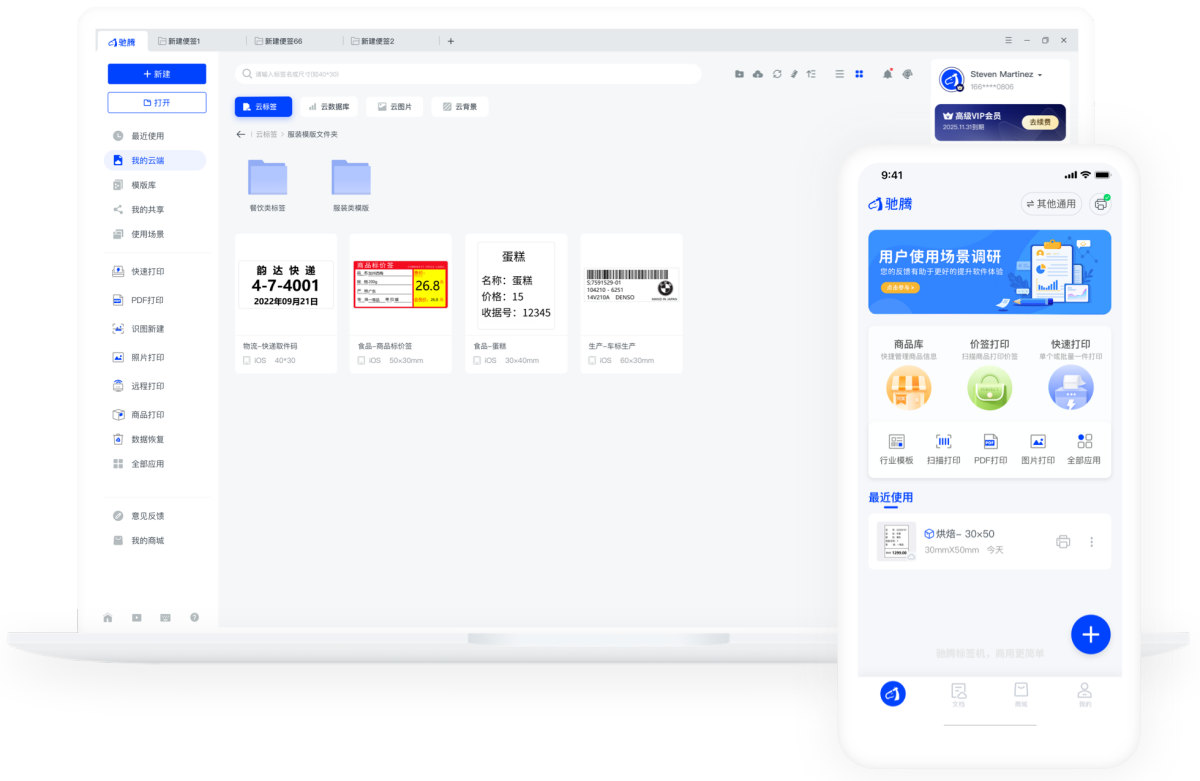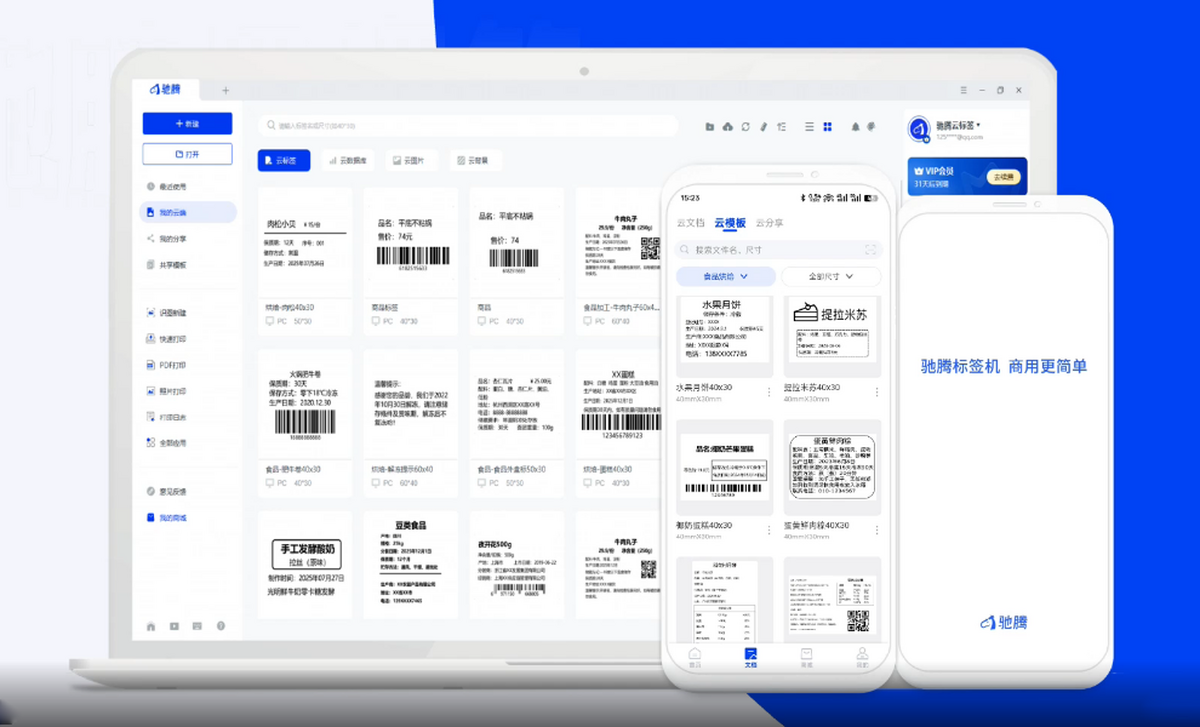 驰腾云标签是一款简单好用、功能强大的标签编辑软件,广泛应用于食品、服装、生产、仓储、珠宝、商超等行业,为企业提供高效、稳定、简单的标签打印解决方案,帮助企业实现标签作业流程化、规范化。