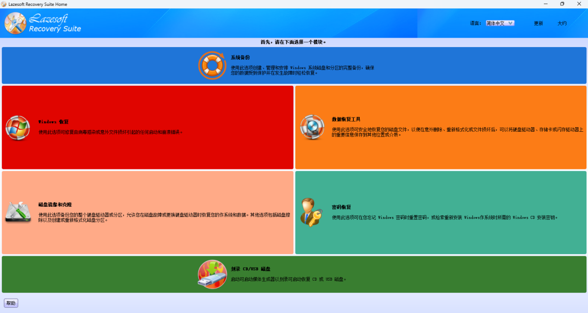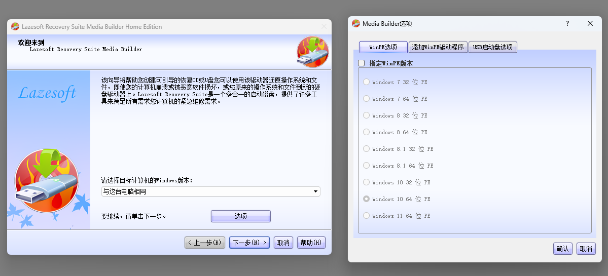 基于WinPE和Linux基础的可启动磁盘构建器,Lazesoft恢复套件拥有最佳的硬件兼容性。