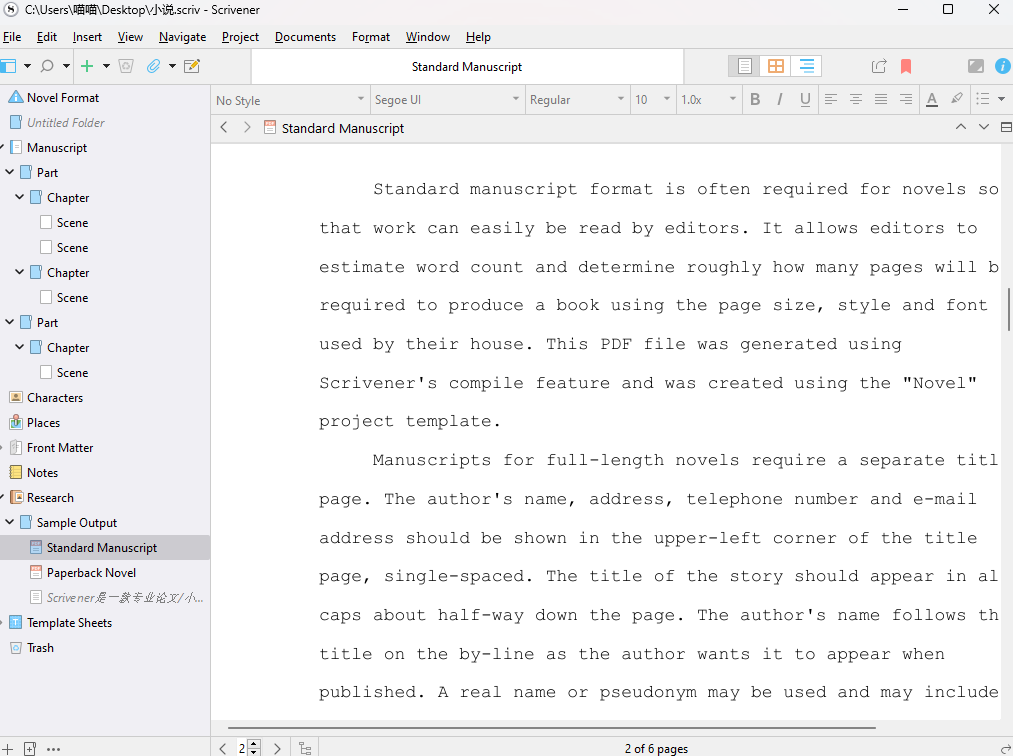 在一次编辑一个部分和整体编辑稿件之间立即切换,也可以将每个场景写成一个单独的文档等;