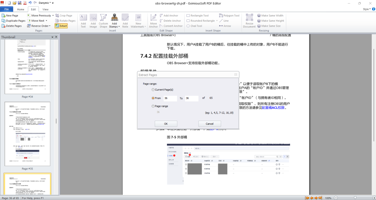 支持从当前文档中提取一定范围的页面进行编辑。