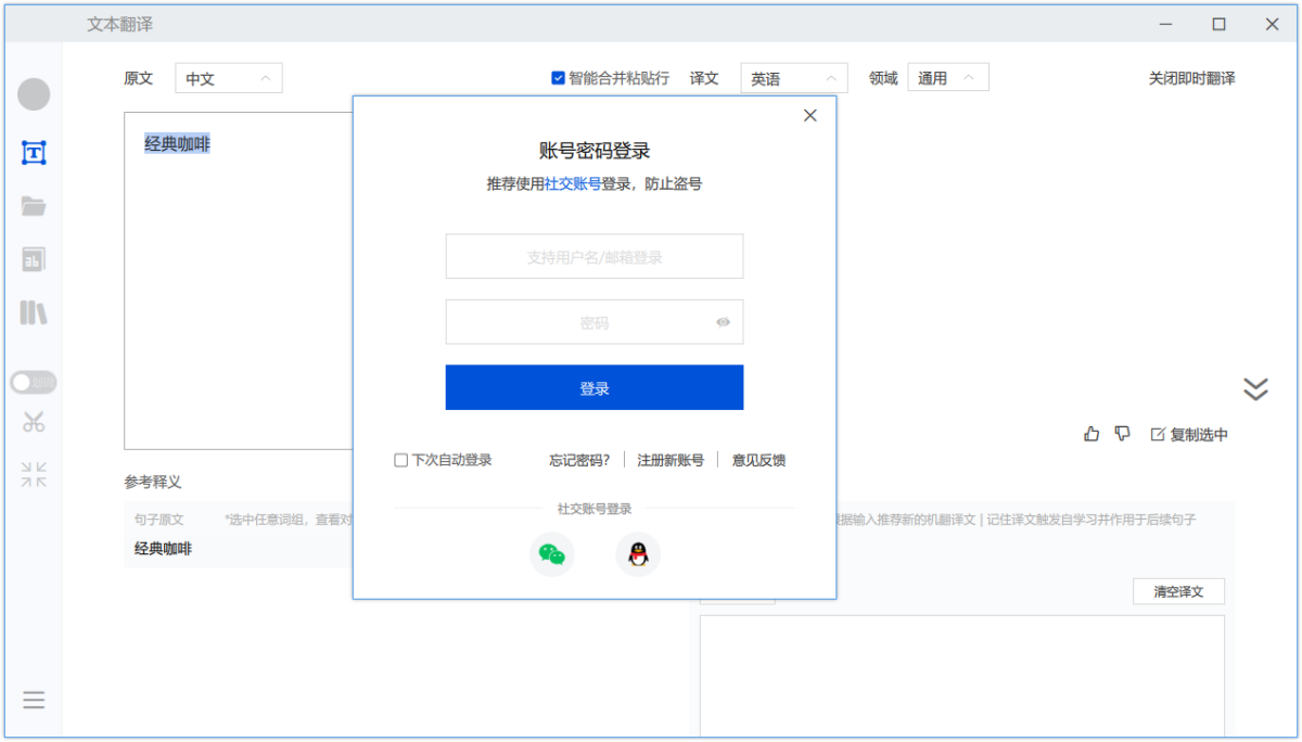 腾讯交互翻译TranSmart是由腾讯AI Lab发布的一款AI辅助翻译产品,可满足用户快速翻译的需求,用AI辅助人工翻译提高效率和质量。TranSmart采用了团队自研的人机交互式机器翻译技术,融合神经网络机器翻译、统计机器翻译、输入法、语义理解、数据挖掘等多项前沿技术,配合亿级双语平行数据,是一款人工智能辅助翻译互联网落地产品,可为用户提供实时智能翻译辅助,帮助用户更好更快地完成翻译任务。