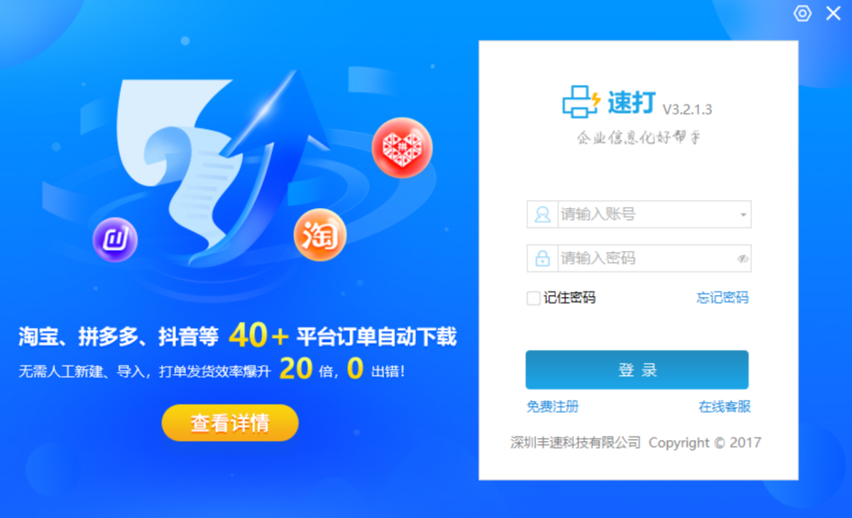 速打线下用户专用版是针对线下需求研发的一款打单产品,功能精炼、操作简捷。旨在为广大电商用户提供一整套覆盖订单、采购、库存、物流、财务、售后等信息化管理解决方案。