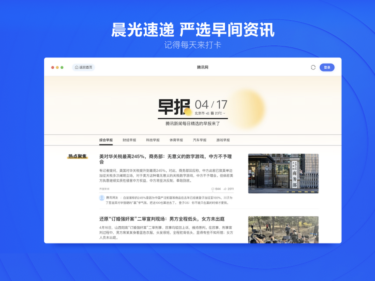 腾讯新闻是腾讯公司精心打造的7x24小时全方位资讯软件,提供高效、优质的精品资讯服务。在这里,你可以快速获取重大突发热门的新闻资讯,新闻出品的独家内容,同时可参与问答,直播,评论等多种互动,全方位了解新闻动态。