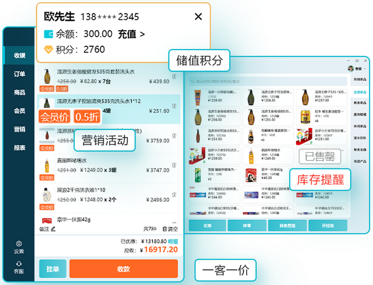 智慧记AI零售是一款简单智能收银软件,支持进销存管理、会员营销,适合商超便利、烟酒茶叶、服装鞋帽、生鲜水果等行业,支持手机、电脑、平板收银,同时,借助AI技术,可生成营销海报、分析店铺数据、创建优惠促销方案。