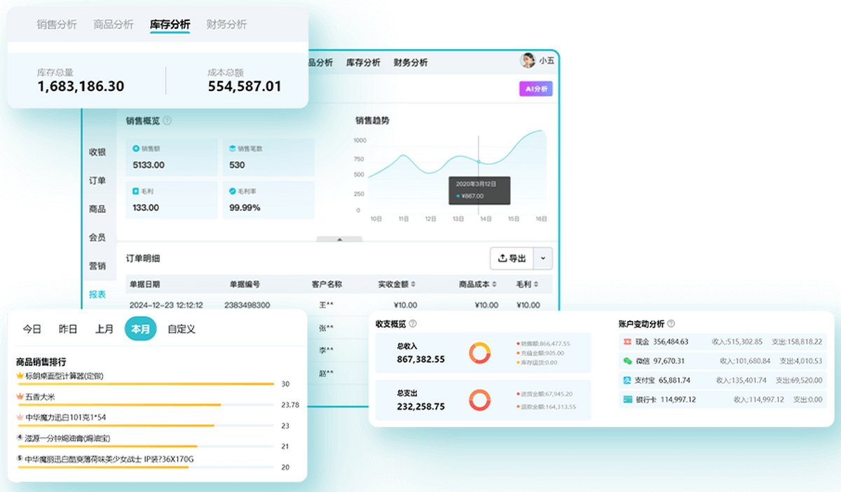 智慧记AI零售,Windows、iOS、安卓系统全兼容,PC、手机、平板、iPad、都能装专属客户端,顺手的设备随便用。还能靠 Al 自动整合收银数据、提醒滞销品清仓,不用再守着传统收银机记台账,门店经营立马变灵活、更智能!