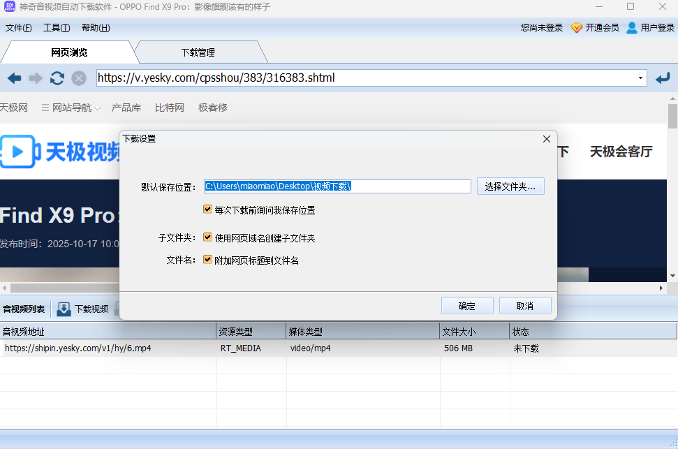 点击下载视频按钮,开始下载视频文件,支持设置视频保存目录和自定义视频文件名称;