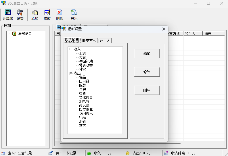 10、记帐功能人性化的设计,分为支出与收入,还可管理这些项目。另有统计报表功能。是目前任何一款软件都没有的。