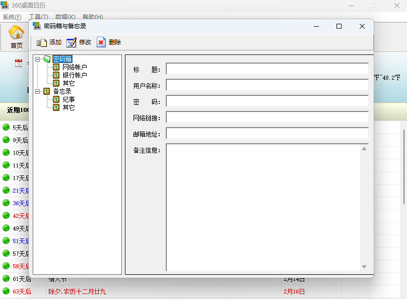 15、有了360桌面日历下载,当然有很好的保护数据功能,在窗口中轻轻的按下数据备份,就能把你的数据备份出来。还可以还原数据的哦。