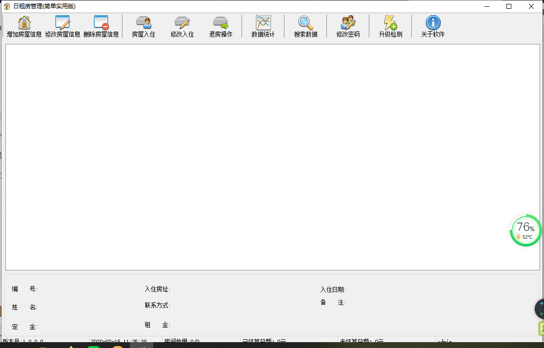 日租房管理软件官方版是一款功能丰富的日租房出租房管理系统,日租房管理软件官方版提供了增加房屋信息、修改房屋信息、删除房屋信息等操作,不仅如此,日租房管理软件最新版还支持房屋入住、修改入住、退房操作、数据统计、搜索数据、修改密码等操作。
